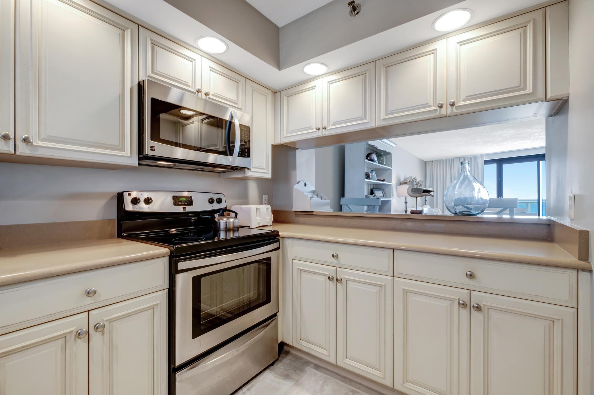 You’ll feel right at home in your beautifully decorated three-bedroom unit with impeccable furnishings and appliances carefully selected for aesthetics and comfort. With a large living area for living your best vacation days, this impeccably furnished space leaves nothing to want. Three full luxurious baths with walk-in shower, in-unit washer and d