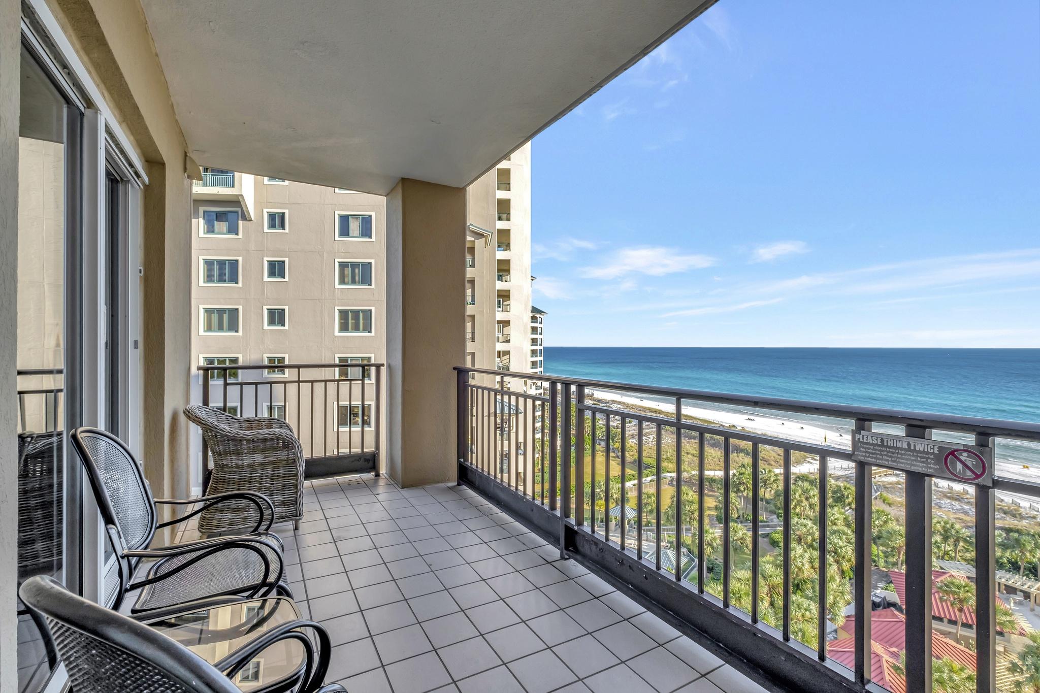 Experience the ultimate getaway in this 1-bedroom, 1-bath top floor condo in the Elation building of the Grand Complex. Offering sweeping views of Choctawhatchee Bay from the balcony, this unit exudes a coastal charm with contemporary furnishings and tile flooring throughout. Relax in the bedroom with a king bed and a lovely view of the bay from yo